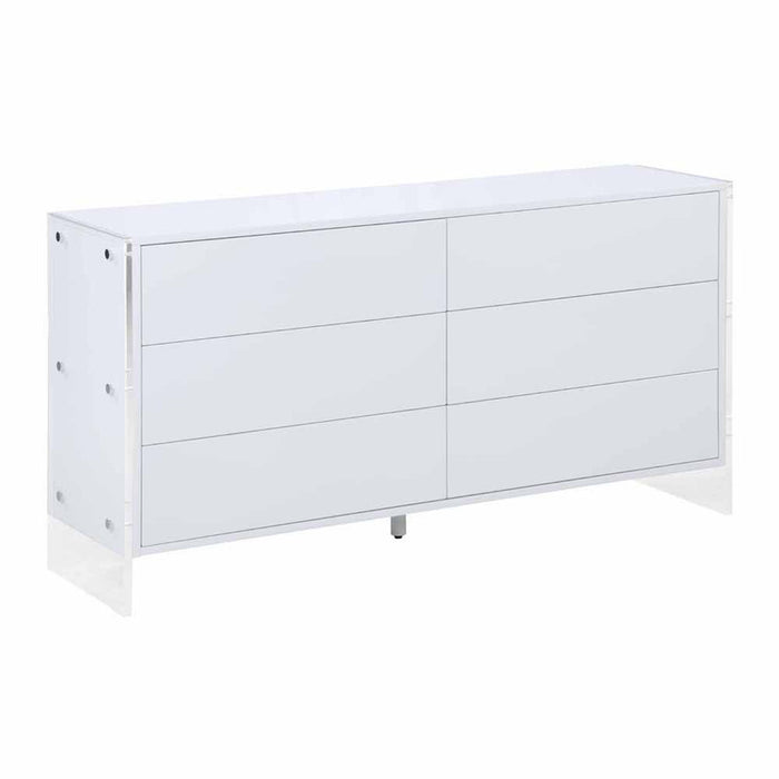 Host in style and comfort with this one-of-a-kind buffet made of a beautiful combination of wood and solid acrylic. The 0.7” thick solid acrylic side panels give sturdy support, while the glossy white finish makes it match well with many settings. The cabinet features six push-to-open drawers. The 61” long top surface can be used to display decorative pieces in the room. This contemporary buffet is the perfect furniture piece to add to your room if you are looking for a cabinet that offer additional storage space in your room.
