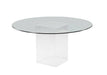 This elegant table features a 54" round, tempered glass top mounted on a pedestal base made of wave-textured acrylic.