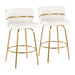 Cinch - 26" Fixed-Height Counter Stool With Swivel (Set of 2) - Gold Metal And White Faux Leather With Round Footrest