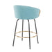 Claire - Counter Stool (Set of 2) - Black Metal And Light Blue Velvet With Gold Metal Accent