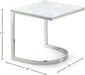 Lend your living room or den a modern slant with the Copley end table from Meridian Furniture. This end table features geometric bases, and a sleek chrome finish that gives your space a bold, up-to-the-minute look. Each table has a solid stone top for durability and style.