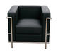 Soft padded seating for added comfort Top grain Italian leather Stainless steel frame Available in sofa and chair. Available in a black color.