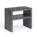 The Derry Nightstand stuns with hand-placed capiz shells in brilliant luminous finish. With an open, airy design and a single shelf for storage, it is the perfect balance of function and flair.