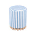 Meet the Dex Striped Linen Ottomans, a petite and playful addition to your space, combining fresh design with a tropical aesthetic. The solid wood spherical orbs on the base provide a unique aesthetic touch, ensuring a sturdy and stylish foundation. With washed linen-style cabana stripes, these ottomans bring a punch of personality to any space, offering additional seating or a stylish footrest. Available in Beige, Pastel Blue or Salmon Pink.