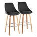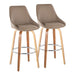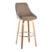 The Diana Fixed-Height Barstool by LumiSource brings modern style and comfort to any space. Featuring a plush upholstered seat and backrest, this swivel stool sits atop a sturdy wood frame with a built-in metal footrest. Crafted with attention to detail, the Diana's sleek tapered legs and 360-degree swivel provide both form and function, making it a versatile seating solution for your kitchen, bar, or dining area.