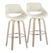 Fabrizzi - 30" Fixed-Height Barstool With Swivel And Round Chrome Metal Footrest (Set of 2) - White Washed Wood And Cream Noise Fabric