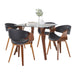 With a simple and sleek table, and an accent of comfortable chairs, the Folia-Symphony Dining Set by LumiSource will be a great addition to a modern kitchen or break room. With a contemporary styling, this is a beautifully curated set to make life stylish and easy. With a seating capacity of four, this dining set would be perfect in any dining room, kitchen, or breakroom.