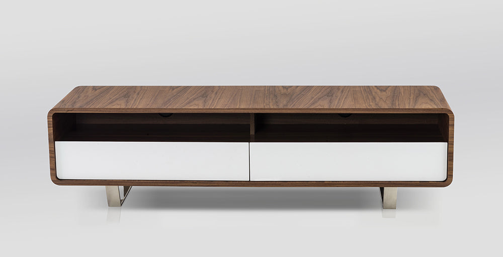 There is something alluring about warm walnut veneer when contrasted with white high gloss. The striking appeal, plenty of storage, and simplistic design that speaks in volumes, this what the Gramercy TV Stand so ideal for any living room.