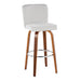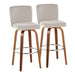 Henry - 30" Fixed-Height Barstool With Swivel (Set of 2) - Walnut Wood And White Fabric With Round Chrome Footrest
