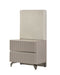 Introducing the Grace Bedroom Set by J&M Furniture. This unique bedroom blends modern elegance with timeless sophistication. Featuring a sleek matte taupe wooden finish, the set exudes a warm, inviting ambiance. The case goods showcase a striking ribbed pattern on the drawer fronts, complemented by sturdy dark bronze legs, offering a subtle contrast that enhances the overall design.
