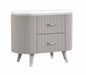 The Opal Bedroom Set by J&M Furniture exudes contemporary elegance with its unique combination of textures and materials. The bed and case goods both feature a sophisticated light taupe ribbed detail, adding depth and character to the design. White stone tops on the case goods provide a luxurious contrast, enhancing the modern aesthetic.