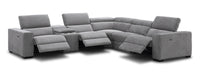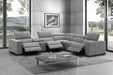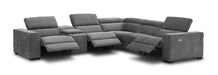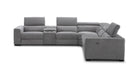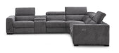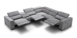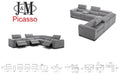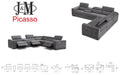 Visually Clean Lines and spacious seats set the Picasso apart from the standard. This iconic sectional is fully modular allowing you to have many options to configure it to your room's need. The Picasso Motion Sectional features 3 powered recliners and headrests for maximum comfort. This 6 piece sectional features a convenient console with two cup holders plus storage, 2 end recliners, 1 arm less recliner, 1 stationary arm less & 1 plush corner cushion for ultra comfort and a solid oak frame to ensure long lasting use. Available in Polyester Fabric 3 colors: Sand, Light Grey, Dark Grey or Leather in 5 Colors: Blue Grey, caramel, white, dark grey & silver grey.