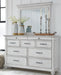 Give your retreat vintage charm and valuable drawer storage with this dresser. In a beautifully distressed whitewash finish, you'll love putting it all away in casual style. Seven full-sized drawers and two accessory top drawers will easily accommodate your needs. Generously scaled moulding from top to bottom, along with bun feet and drawer handles with a transitional aesthetic, give this dresser character—evoking the feel of a quaint cottage escape.