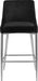 Yield to your contemporary side with this Karina Stool. This modern stool is counter height, making it an ideal addition to a home bar or eat-in kitchen counter. The velvet upholstery brings a neutral element to your room, so it can easily meld with other furnishings. Plump seat and back cushions ensure that guests sit comfortably, whether they're enjoying a sudsy brew or a stack of pancakes. The polished metal frame is sturdy and stout, adding a durable slant to this lovely stool.