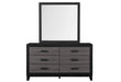 With its urban farmhouse design, the best of farmhouse and urban living combine to create an upscaled farmhouse appearance. The case pieces are black with rustic grey wood inlay. In addition to the two-tone design, the metal hardware completes the mixed media look and adds a modern flair.