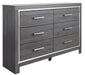Lodanna - 6 Pc. - Dresser, Mirror, Queen Panel Bed With Roll Slats - Gray