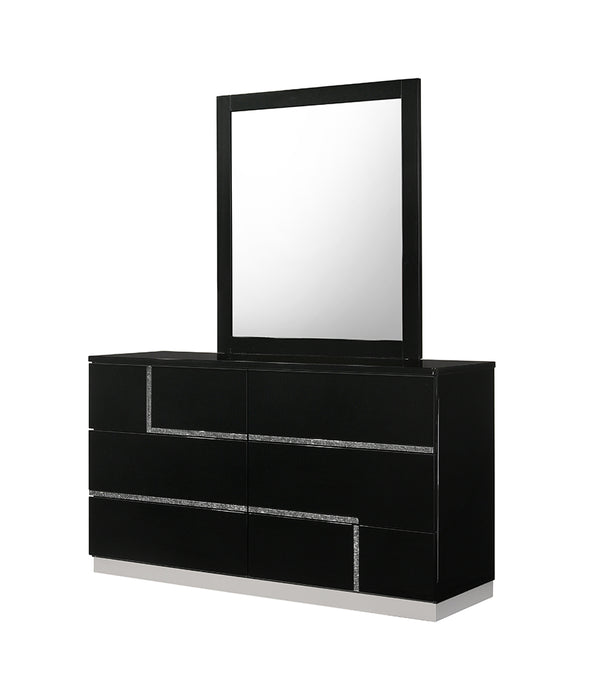 J & M Furniture offers a unique design and outlook of the modern bedroom. Beautifully complemented with crystals, this black lacquered finish set will enhance the look of bedrooms of different sizes and colors. Whether choosing the entire set, its individual platform bed, or any of the case goods, you can rest assured that this quality furniture is meant to last. Our case goods are equipped with full extension glides.