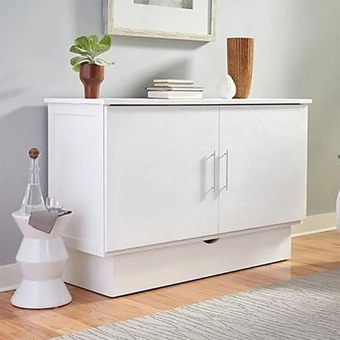 Arason Madrid White Cabinet Bed is one of the newest additions to the Creden-ZzZ cabinet bed collection. The Madrid cabinet bed is one of the few Arason beds that comes in both a full and queen size. This cabinet bed is perfect for saving space and turning into a full or queen size bed when you have guests. The Madrid actually saves you about 40 percent more space than a sofa sleeper and weighs significantly less as well. Guests will love the Gel Memory Foam Mattress that comes included with the bed. Giving them a great night sleep, with no springs, no rolling to the middle and no bar in your back.(More Information on the Mattress Below)
