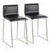 Mara - 26" Counter Stool (Set of 2) - Brushed Stainless Steel, And Black Faux Leather
