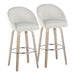 Matisse - 30" Highback Fixed-Height Barstool With Swivel And Round Chrome Metal Footrest (Set of 2) - White Washed Wood And Cream Fabric