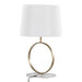 The Moon Table Lamp by LumiSource is sure to bring a touch of sophisticated style to any desk or office area. With its white marble base, circular gold metal frame, and linen empire shade, it's a functional and dazzling accent piece reminiscent of the moon. Light up your room with this modern piece, sure to impress!