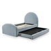 The Moon Bed just got a fresh twist with our new Chambray Blue Chenille, a textured hue that brings soft structure and seaside calm. Available as a twin or trundle and offered in cream boucle, rose upcycled chenille, or chambray blue, this Art Deco-inspired silhouette adds charm, function, and a little magic to any bedroom.