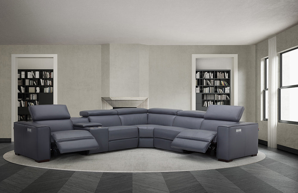 Visually Clean Lines and spacious seats set the Picasso apart from the standard. This iconic sectional features 3 powered recliners and headrests for maximum comfort. Crafted from Premium Top-grain Leather all around, this 6 piece sectional features a convenient console with two cup holders plus storage, 2 corner-end recliners, 1 armless recliner, 1 stationary armless & a plush corner cushion for ultra comfort, and a solid oak frame to ensure long-lasting use.