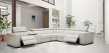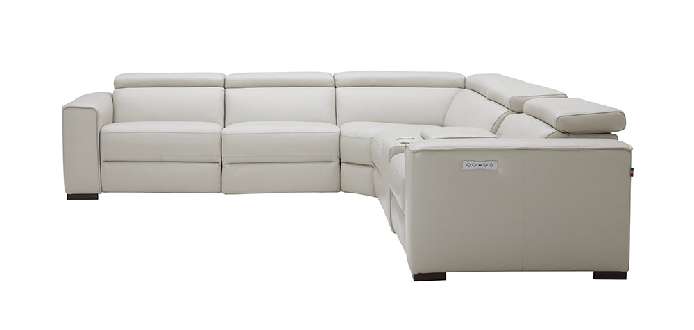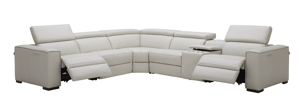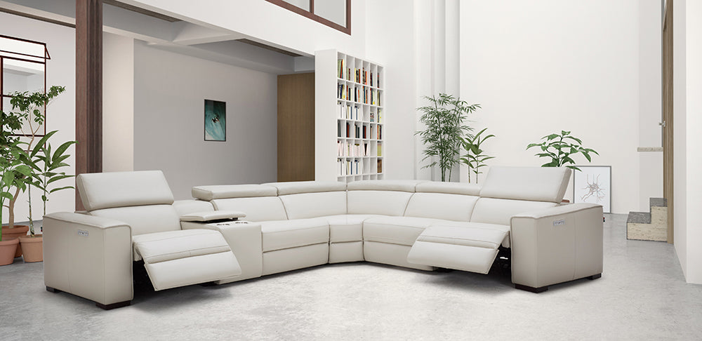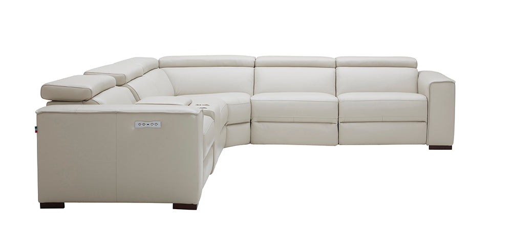 Visually Clean Lines and spacious seats set the Picasso apart from the standard. This iconic sectional features 3 powered recliners and headrests for maximum comfort. Crafted from Premium Top-grain Leather all around, this 6 piece sectional features a convenient console with two cup holders plus storage, 2 corner-end recliners, 1 armless recliner, 1 stationary armless & a plush corner cushion for ultra comfort, and a solid oak frame to ensure long-lasting use.