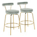Rhonda - Glam Counter Stool (Set of 2) - Gold Metal And Sage Green Velvet