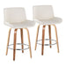 Elevate your space with the sleek Santi Fixed-Height Counter Stool by LumiSource. Featuring elegant bent wood legs and a plush faux leather seat, this stool offers modern sophistication with its minimalist armless design. The gently curved back and contoured seat edges provide both style and comfort, making it a perfect addition to your kitchen island or home bar. Available in various upholstery colors and finishes, choose the one that fits your space best!
