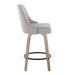 Studded - Marcel Fixed-Height Counter Stool (Set of 2) - Whitewashed Wood, Light Gray Fabric, Brass Metal, Black Metal