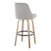 Studded - Marcel Fixed-Height Barstool (Set of 2) - Whitewashed Wood, Light Gray Fabric, Brass Metal, Black Metal