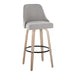 Introducing the Studded Marcel Fixed-Height Barstool by LumiSource, a stunning piece that combines modern style and timeless charm. Crafted with a plush, upholstered seat and a backrest adorned with decorative studs, this swivel stool adds a touch of elegance to any home bar or kitchen. Featuring sturdy tapered bent wood legs, the Studded Marcel Barstool is built to last and provide exceptional comfort, making it the perfect addition to your living space.