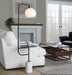 A mix of marble and metal creates a contemporary look that will fit any room. The Symbol Floor Lamp by Lumisource is the perfect size for smaller spaces. With a black metal attached table, white round sconce, and a white marble base, the Symbol Floor Lamp will look great next to any sofa, accent chair, or even in a bedroom.