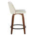 Comfort, modern simplicity, and classic lines define the appealing look of the Toriano Fixed-Height Counter Stool by LumiSource. A padded upholstered swivel seat sits on a fixed-height tapered leg base with a built-in footrest. Available in various colors, choose the one that suits your space best!