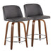 Toriano - 24" Fixed-Height Faux Leather Counter Stool (Set of 2) - Gray And Walnut