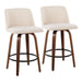 Tintori - Fixed-Height Counter Stool (Set of 2) - Walnut Wood With Round Black Footrest And Cream Noise Fabric