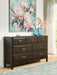 A rich, metropolitan finish. Unbeatable function. With this dresser, it’s a breeze to create a casual contemporary hideaway full of style and convenience. It combines thoughtful craftsmanship and handy storage, with smooth-gliding drawers to help keep clothes and linens organized. Metal bar pulls complete the look with added flair.